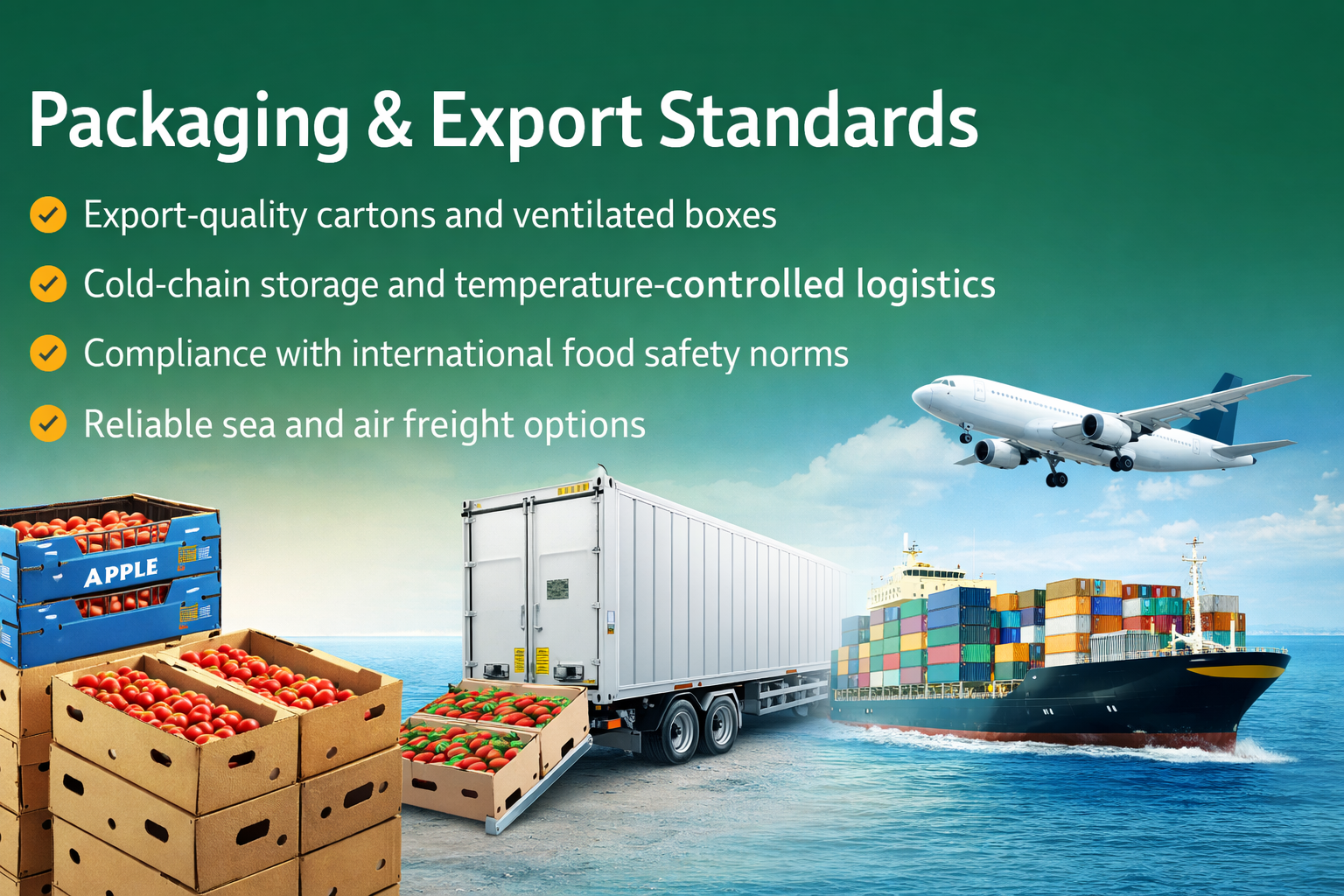 Our organic fruits are grown without synthetic chemicals and handled under strict hygiene protocols. Each shipment undergoes quality checks, grading, and export-grade packaging to maintain natural freshness during global transit.